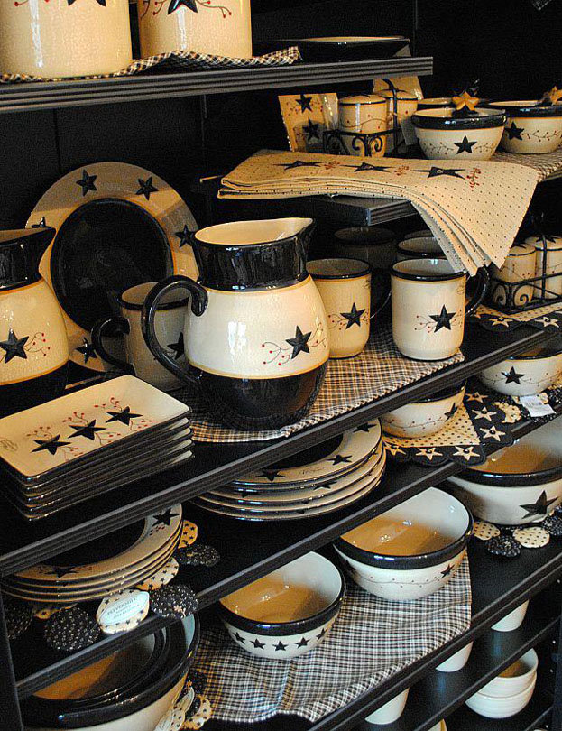 Throughout our store you will also see other pottery with willow tree, black stars, and other patterns.